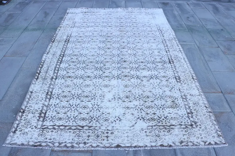 Elegant Beige Rug, 5.5x8.6 ft Abstract Design