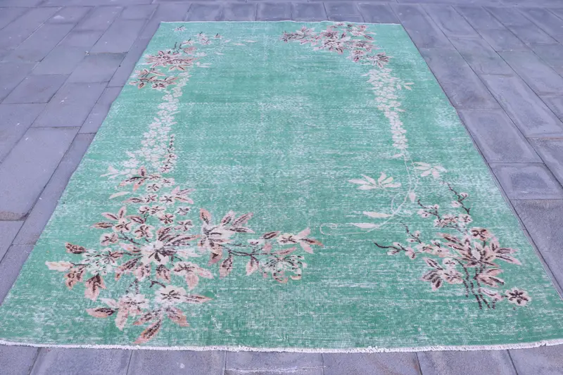 Green & Beige Checked Rug, 6.5x9.6 ft Elegant Decor
