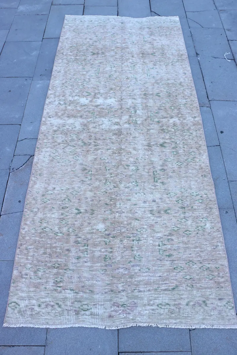 Elegant 3,3x7,7 ft Beige Ikat Rug, Chic Green Accents