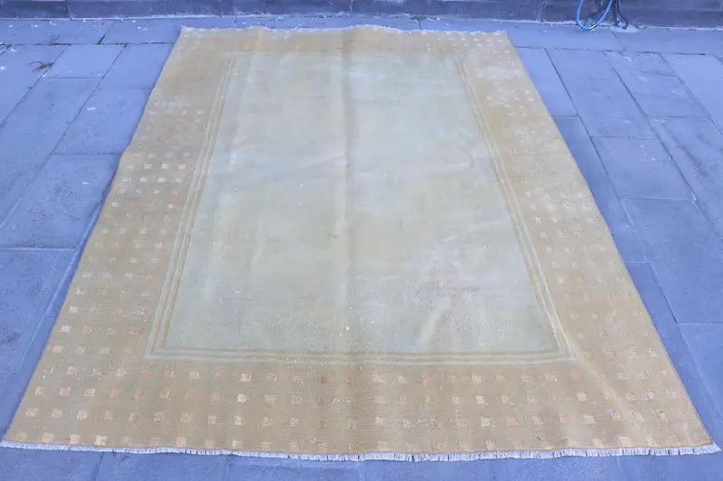 Elegant Beige & Green Rug, 5,6x7,5 ft Geometric Floral