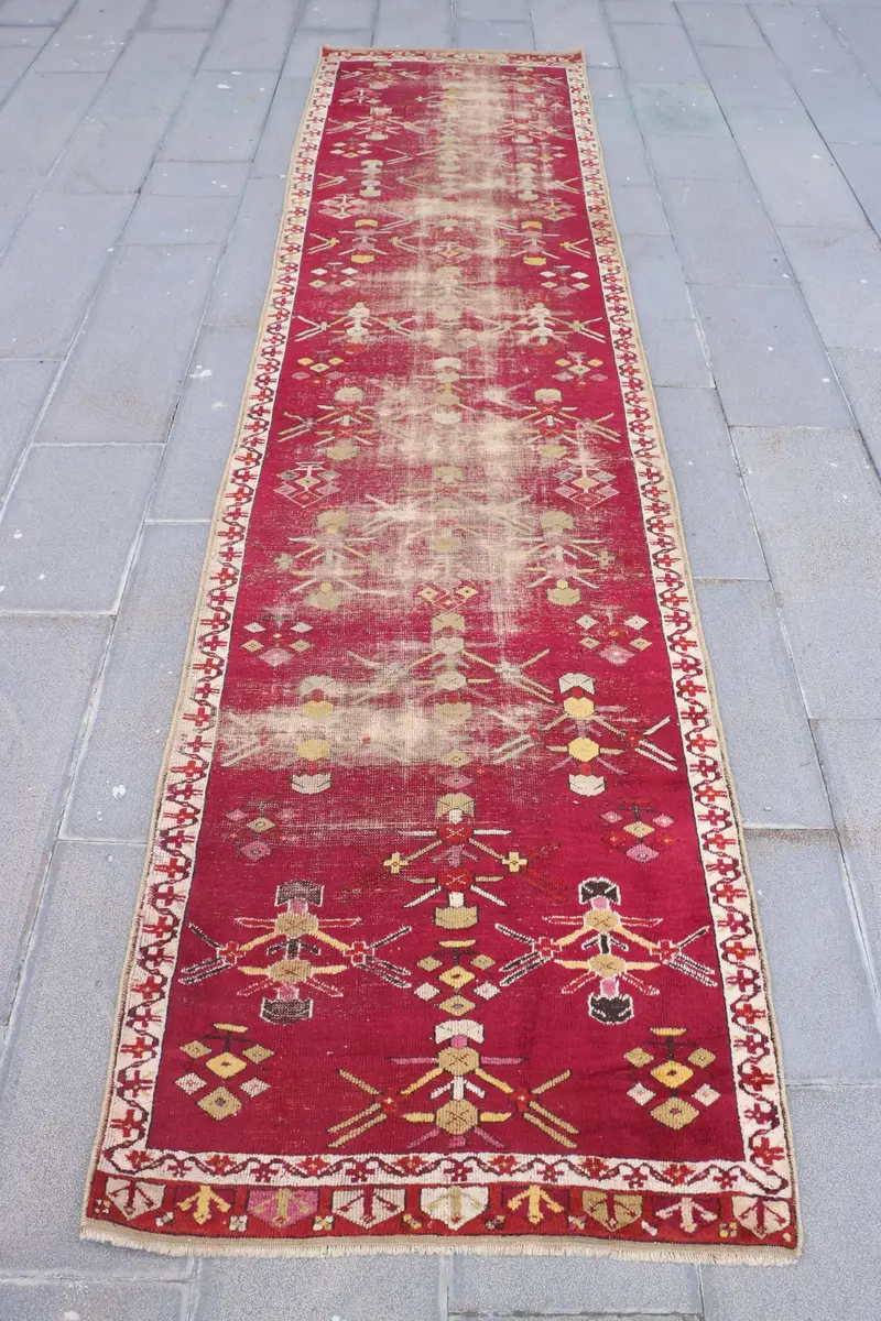 Red, Yellow Abstract Rug, 3x12.8 ft Chic Decor