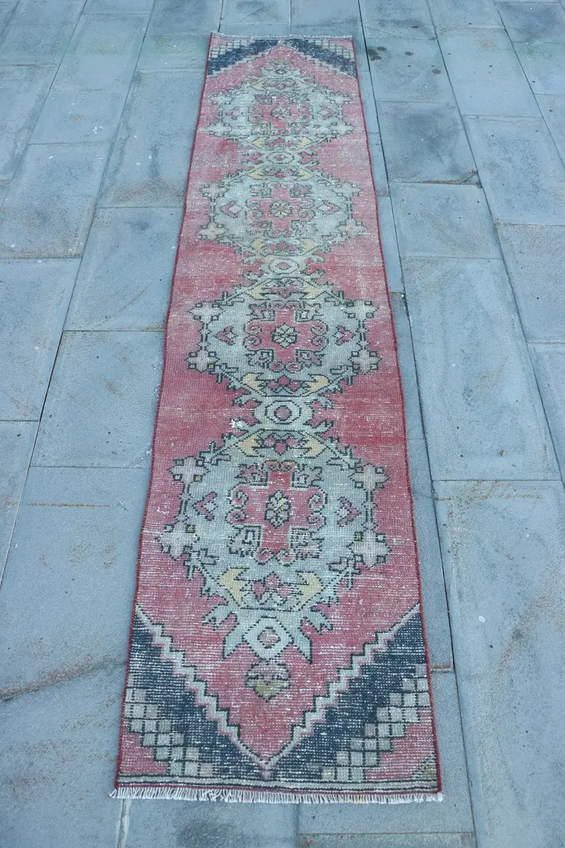 Red & Yellow Rug, 1,9x8,8 ft Striped Geometric Design