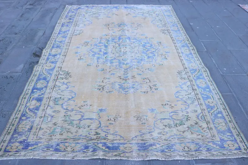 Beige Ombré Rug, 6,1x9,3 ft with Blue Accents