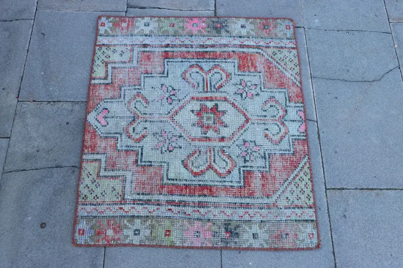 Brown Moroccan Rug, 2.1x2.5 ft with Red Accents