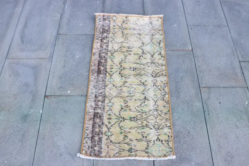 1.5x3.2 ft Yellow Rug with Brown Polka Dots, Vibrant Decor