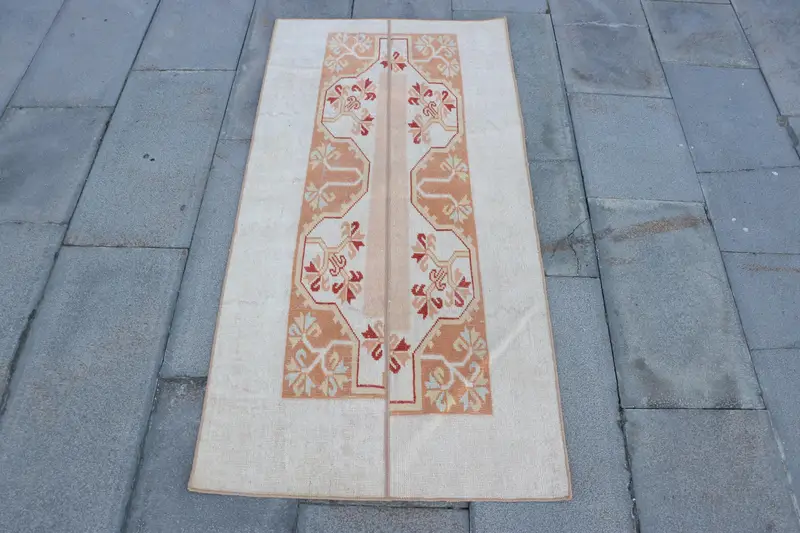 Elegant Beige Oriental Rug, 2,2x4,5 ft with Orange Accents