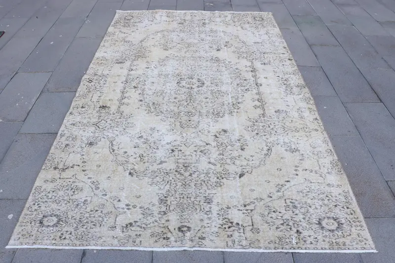 Elegant Beige Ikat Rug, 5.4x8.5 ft Chic Decor
