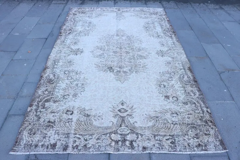 Elegant Beige Rug, 5.5x9 ft Bordered Design
