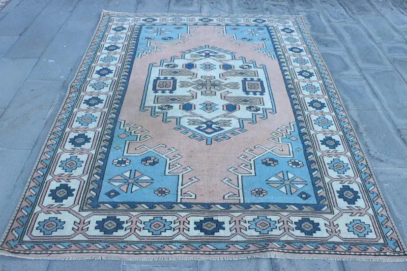 Brown & Blue Southwestern Rug, 6x7 ft Chic Decor