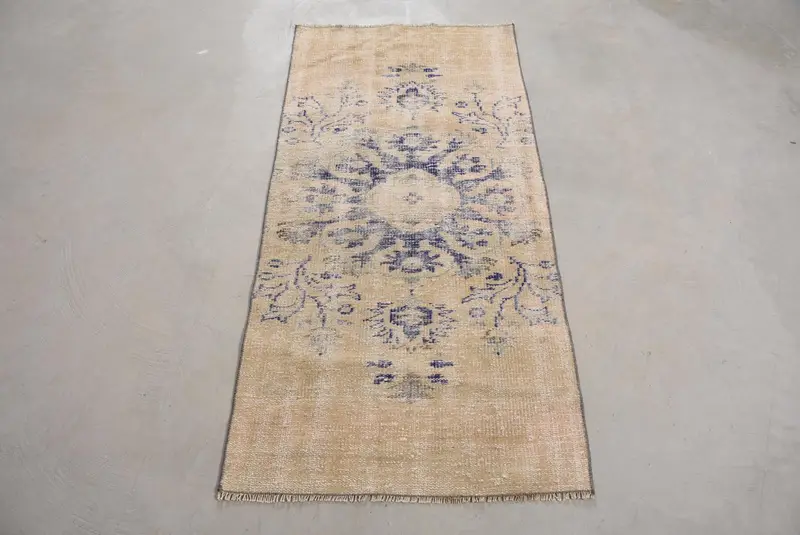 Elegant Beige & Blue Floral Rug, 2.3x4.8 ft Chic Decor