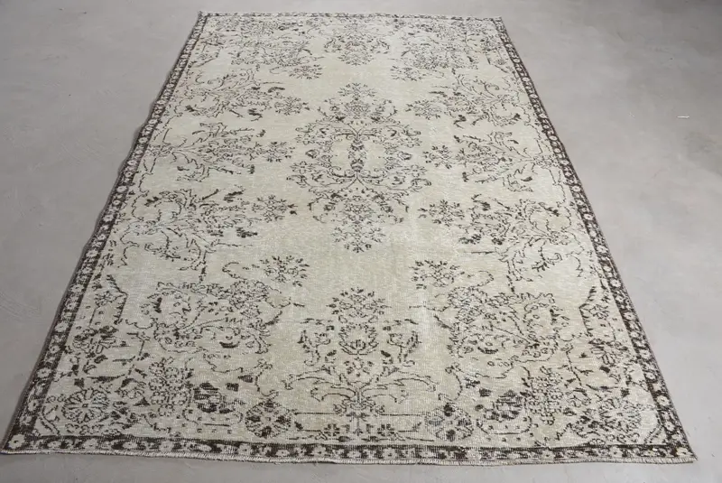 Elegant Beige Floral Rug, 5,6x8,3 ft Chic Decor