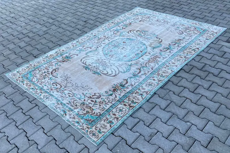 Blue, Beige Floral Rug, 5,6x9,5 ft Elegant Decor
