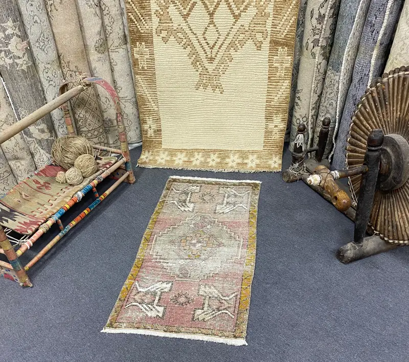 1,6x3,2 ft Pink Rug with Floral and Geometric Patterns