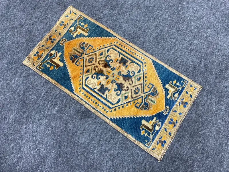 Vibrant Orange Rug, 1.4x2.8 ft Blue Accent