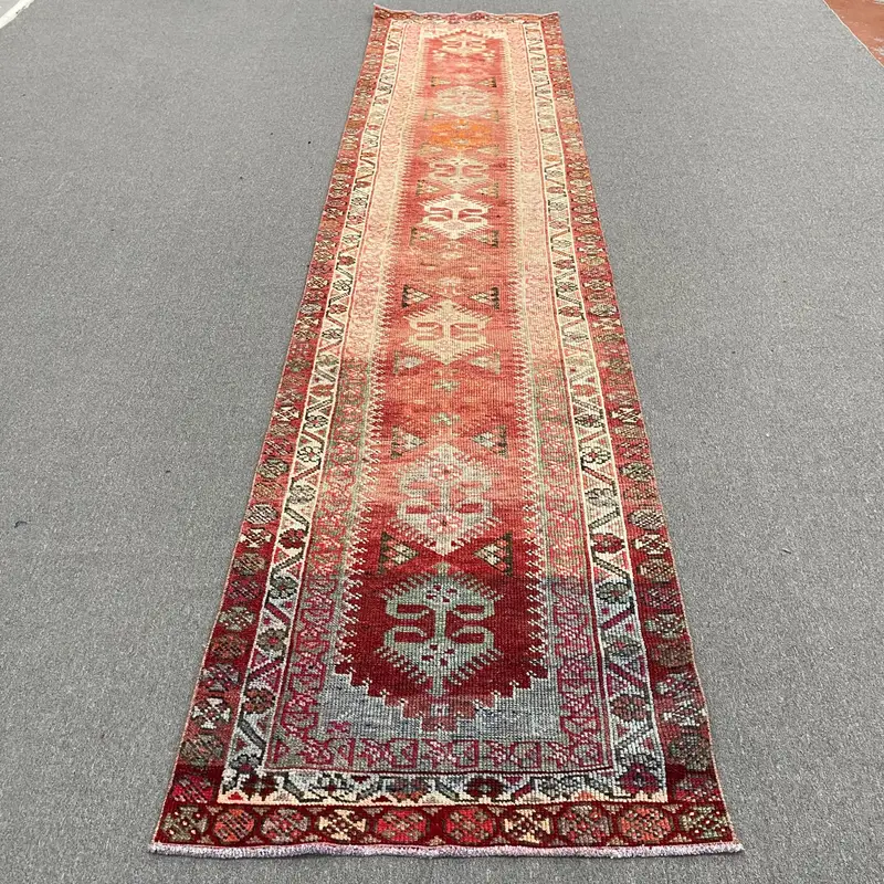Red and Green Floral Rug, 3x13.3 ft Elegant Decor