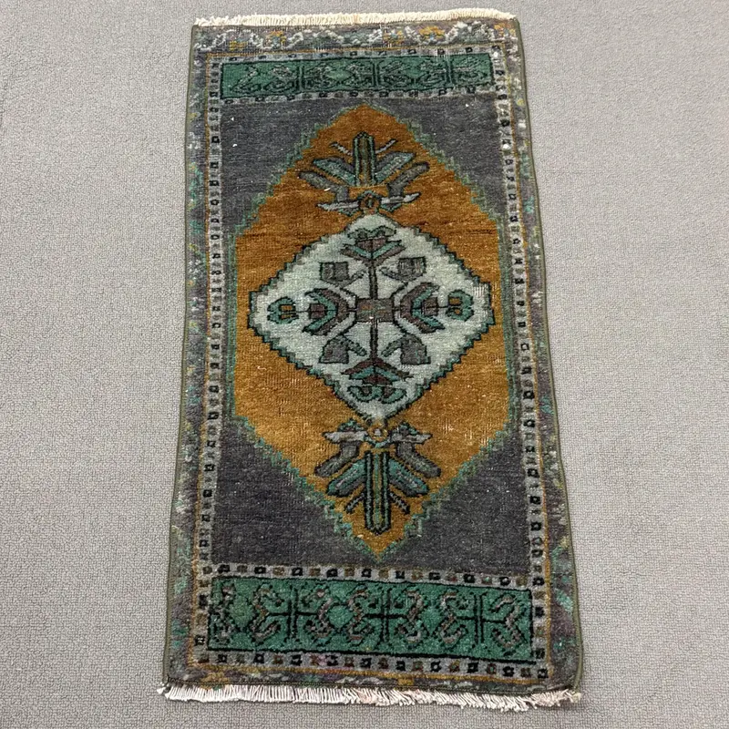 Blue Ikat Rug, 1.3x2.6 ft with Green Accents