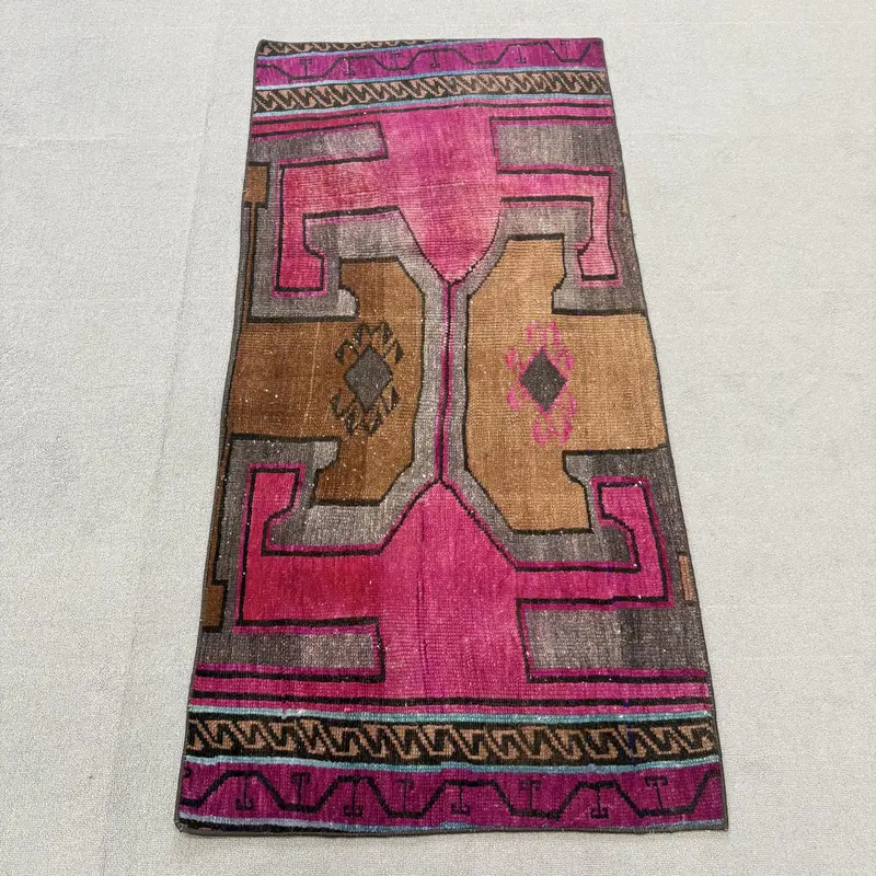 Pink and Gray Check Rug, 2.4x4.9 ft Chic Decor