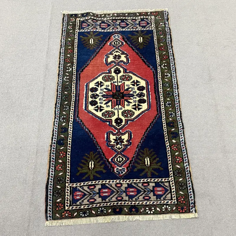 Red and Blue Persian Rug, 1.9x3.6 ft Elegant Decor