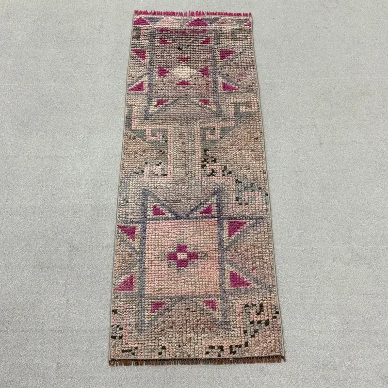 Blue Patchwork Rug, 1,7x4,6 ft with Pink Accents