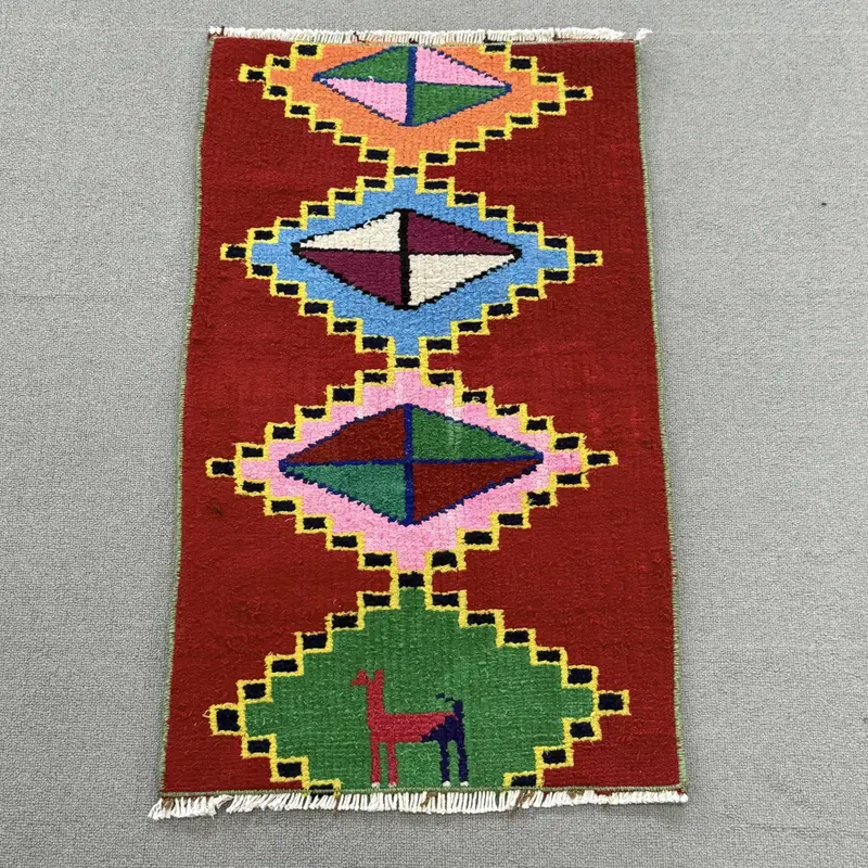 Red and Pink Check Rug, 1.6x2.7 ft Chic Decor