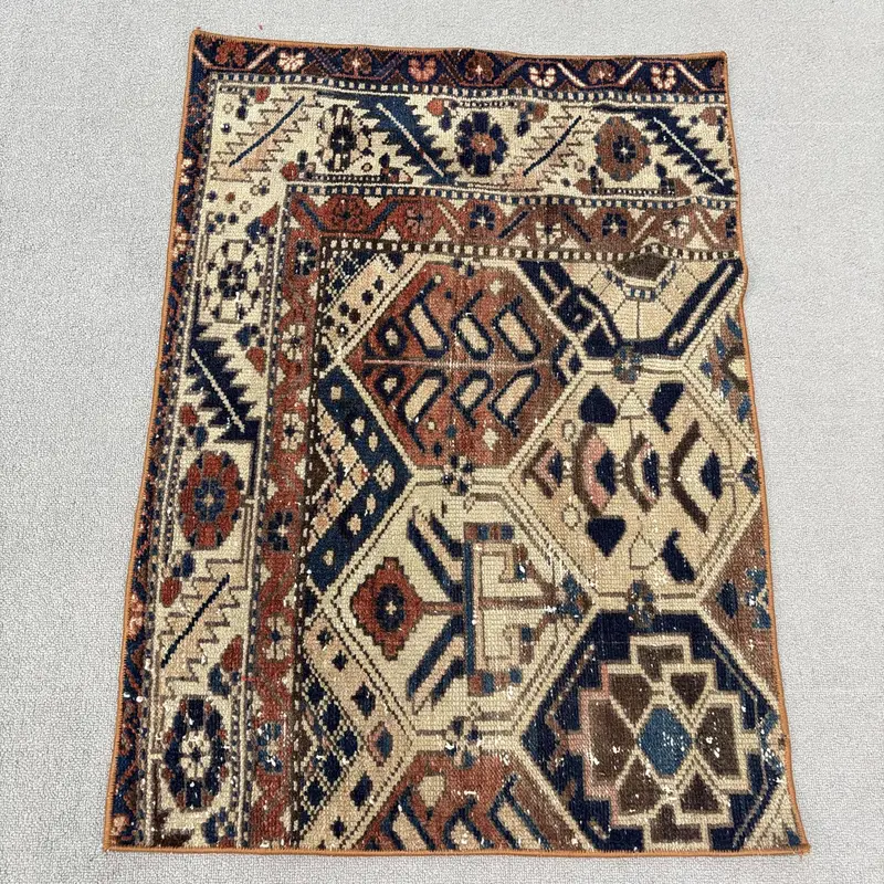 Elegant Black & Beige Rug, 2.2x3.1 ft Floral & Geometric