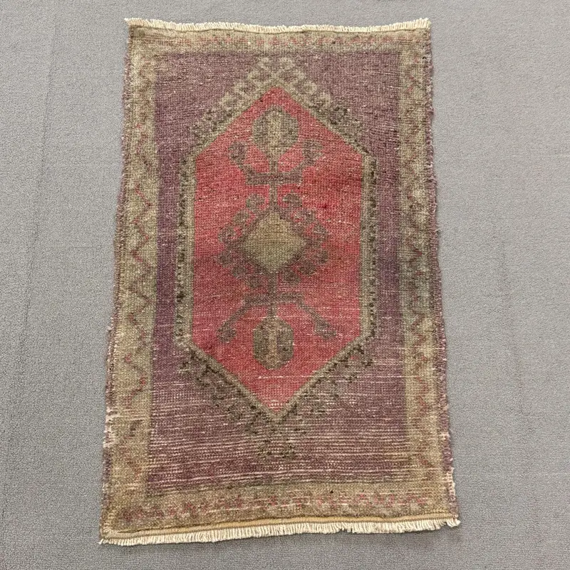 Green & Pink Rug, 1.7x3 ft Botanical Design