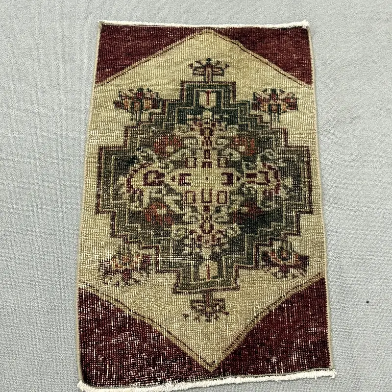 1,4x2,4 ft Beige Moroccan Rug, Elegant Red Accents