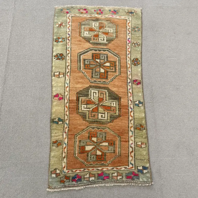 Orange & Green Abstract Rug, 1.6x3.5 ft Vibrant Decor