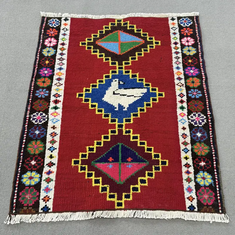 2,7x3 ft Rug, Red & Blue Solid Pattern
