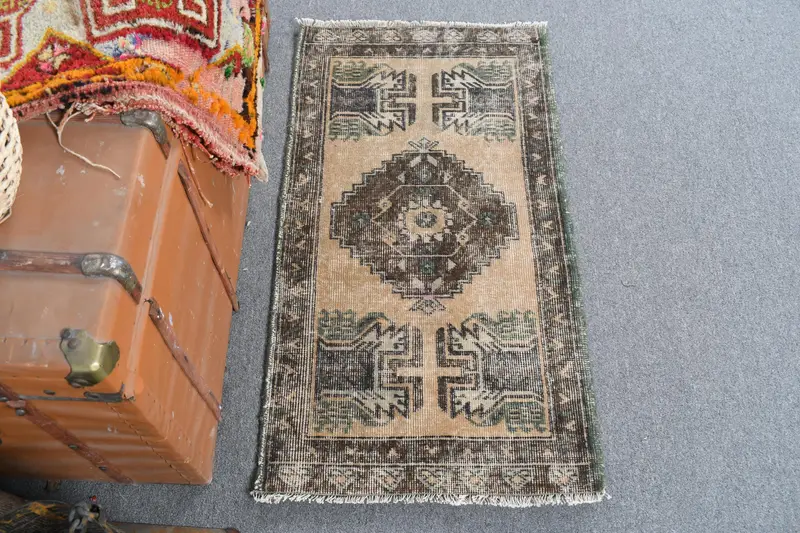 1,7x3,2 ft Beige & Brown Rug, Striped Geometric Design