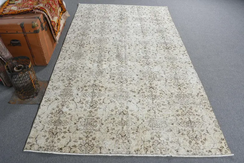 Elegant Beige & Brown Rug, 5x8 ft Striped Geometric