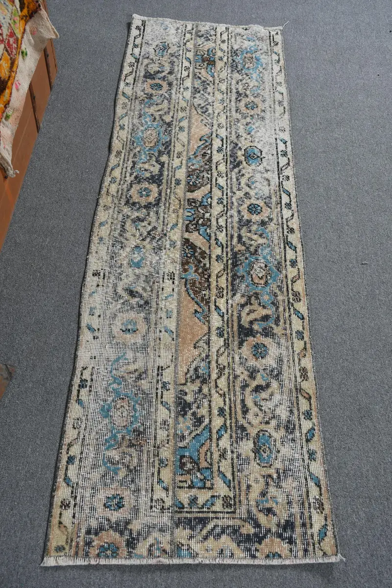 Elegant Beige & Blue Rug, 1,9x6,1 ft Bordered Design