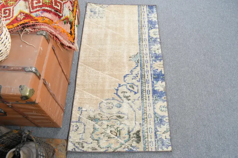 Elegant Beige & Blue Rug, 2x3.9 ft Floral & Geometric