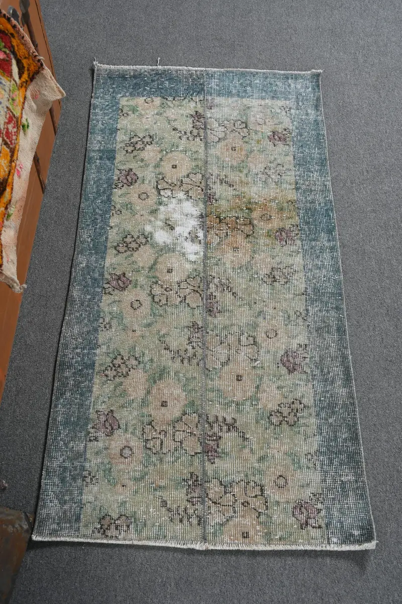 2,3x4,5 ft Green Southwestern Rug, Vibrant Orange Accents