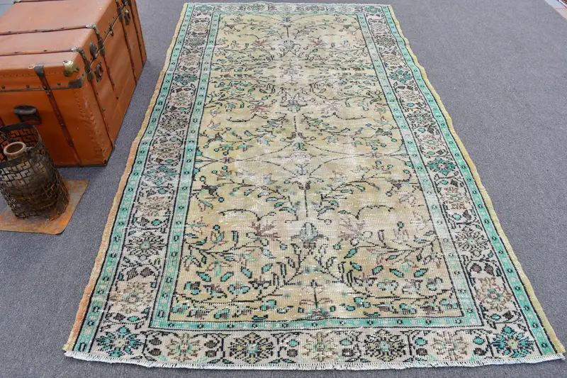Elegant Green Oriental Rug, 5,1x8,7 ft Chic Home Decor