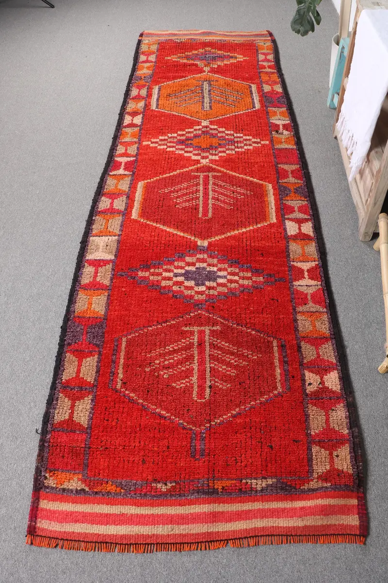 Red & Purple Rug, 3x10 ft Botanical Design
