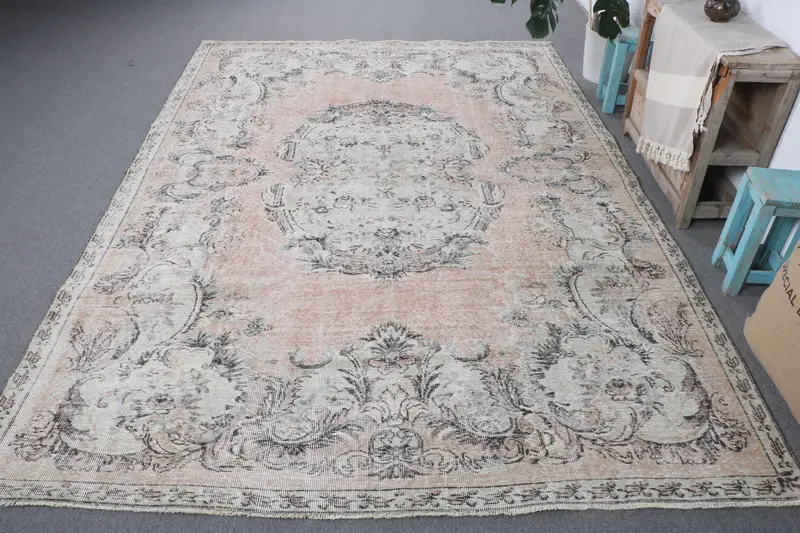 Vibrant Orange & Green Rug, 6,8x9,7 ft Striped Geometric