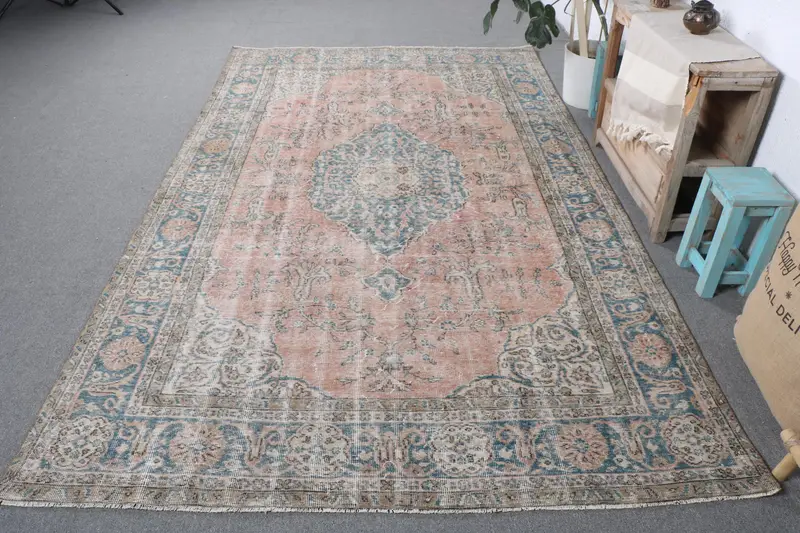 6x9 ft Rug, Vibrant Orange & Blue Striped Design