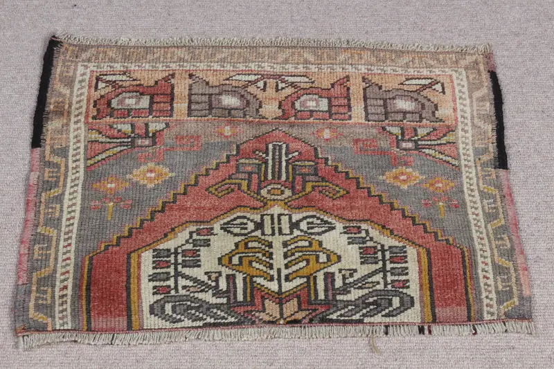 2x1.5 ft Brown Rug, Solid Pattern with Red Accents