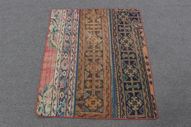 Brown Southwestern Rug, 3,3x3,31 ft Blue Accents
