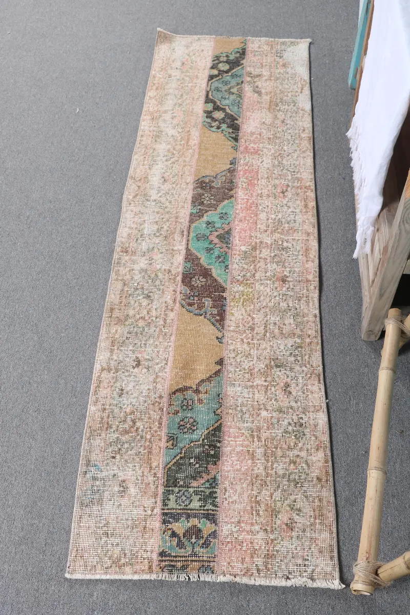 Brown Ikat Rug, 1.8x6.2 ft, Orange Accents