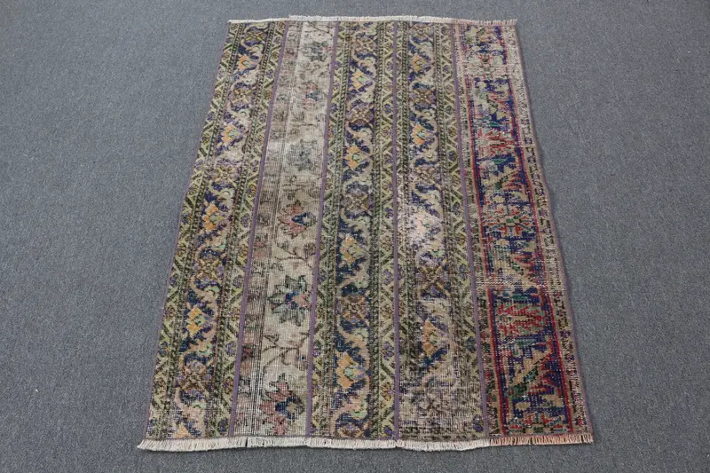 Blue, Beige Floral Rug, 3,12x4,4 ft Chic Decor