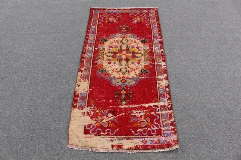 Red Oriental Rug, 2.49x5.15 ft with Purple Accents