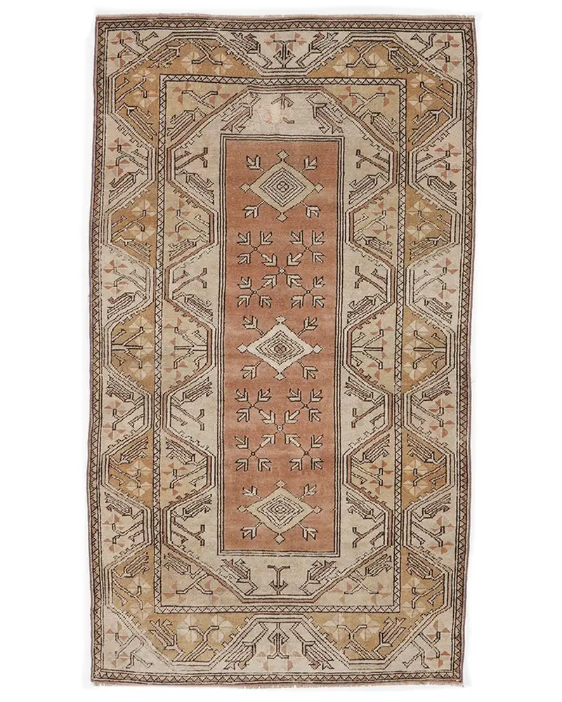 Bronze & Green Rug, 3,5x6,2 ft Elegant Bordered Design