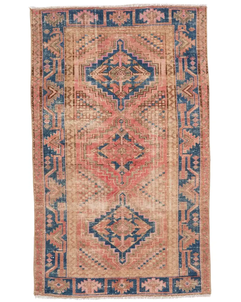 Blue Southwestern Rug, 3,7x6,1 ft with Pink Accents