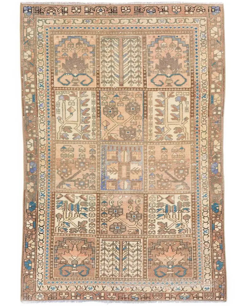 Elegant Beige Rug, 3.6x5.5 ft Blue Accent