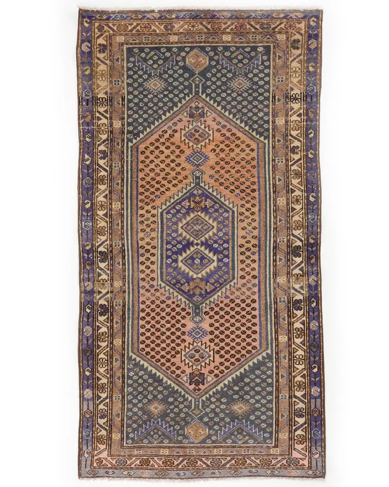Blue Rug, 3,2x6,3 ft with Orange Accents