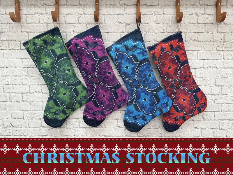 Bold Turkish Rug Print Printed Stocking for Holiday Decor