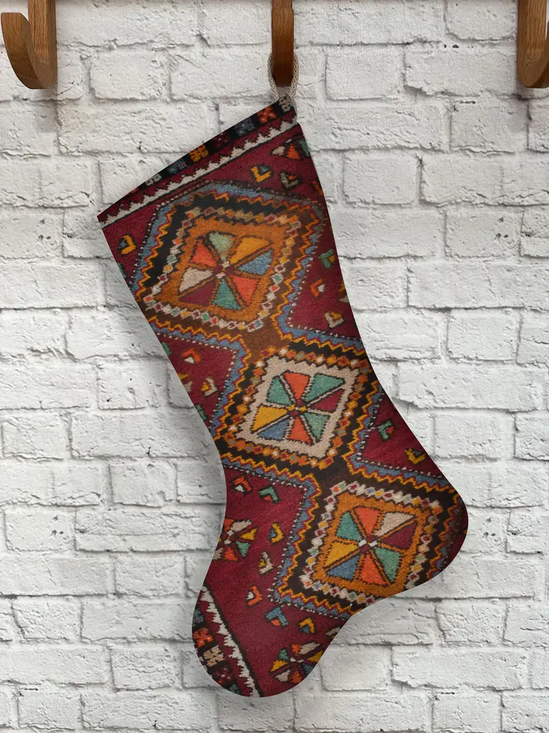 Festive Print Warm Cozy Red Stocking for Holiday Decor