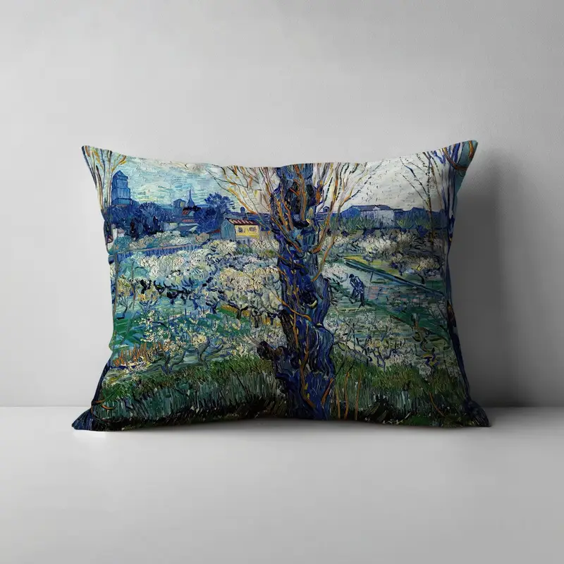 Van Gogh View Printed Pillow: Nature Landscape Art Home Decor
